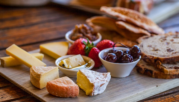 Morning tea with cheese, oysters, & freshly-baked bread